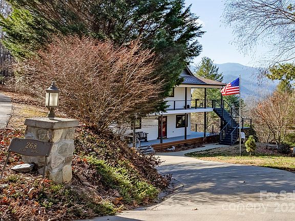 Perched between Dillsboro and Bryson City, this Echo Ridge home offers serenity atop a lush hill with sweeping views of the Smoky Mountains, minutes from Cherokee and Asheville's vibrant attractions. This two-bedroom, three-bathroom sanctuary blends modern design with rustic charm. Its striking white exterior with sleek railings provides a stunning visual contrast. The lower level features a cozy living room with a fireplace, a full kitchen for effortless dining, a versatile bedroom, bathroom and a room that doubles as additional guest space. The main level boasts a spacious living area with vaulted ceilings and a dramatic stone fireplace connected to an expansive wraparound deck for seamless indoor-outdoor living. The primary suite offers a luxurious bath and private deck access. The top floor is a tranquil retreat with another bedroom and a skylight-lit living area, ideal for relaxation or a home office. Experience the pinnacle of mountain living in this exquisite Echo Ridge retreat.