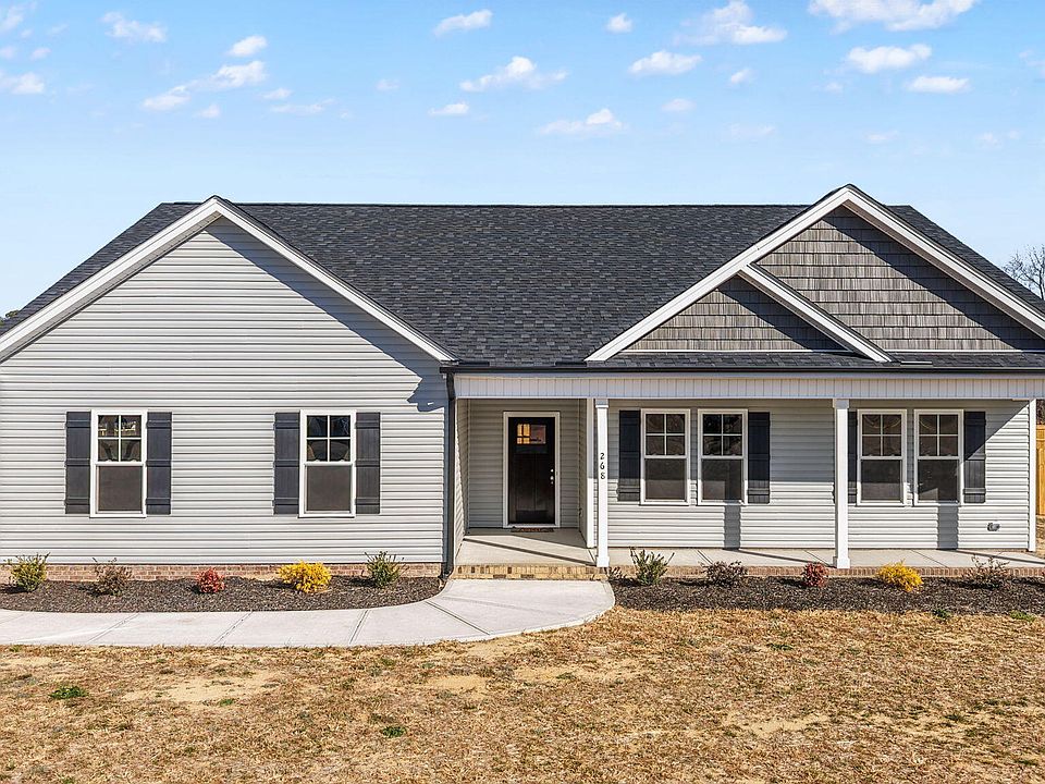 **BUILDER INSTALLED CUSTOM PRIVACY FENCE! A 6' Privacy Fence has been installed in the entire back yard. This stunning ranch-style home at just under 1800 s/f offers 3 spacious bedrooms and 2 baths, providing ample space for your family's needs. The inviting family room welcomes you as you enter from the foyer. This space is perfect for gatherings, with a gas log fireplace featuring a black Granite surround, creating a focal point for relaxation and entertainment. Cook in style in the kitchen equipped with stainless steel appliances including a smooth top range, dishwasher, and microwave. The kitchen is designed for efficiency, featuring soft-close cabinets, and granite countertops. In the master suite, the bathroom features granite countertops w/a double vanity and a large walk-in closet. Additionally, enjoy the outdoors on the covered back porch and private back yard with custom installed wood fence. This home is designed with exceptional craftsmanship and attention to detail. Preferred Lender is offering one prcnt CC credit, Terms and conditions apply.*