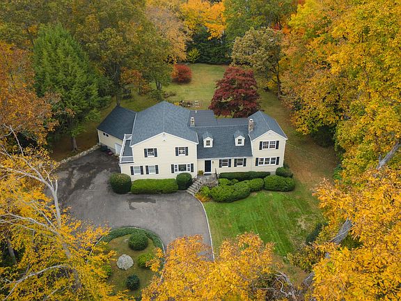 Beautifully sited on 1.2 acres, this expansive contemporary colonial with a sunny disposition features an open floorplan with great flow and generous living spaces. The dramatic two story foyer opens onto the living room with fireplace and the formal dining room. A fabulous kitchen with center island, dining area, Sub-Zeroand French doors to the patio. This light, bright, airy feeling extends to the upstairs to the centrally located play room with built-in bookshelves. The expansive Master Bedroom features vaulted ceiling, balcony, walk-in closet and just renovated bathroom. Two other family bedrooms with hardwood floors are complimented by two additional offices/studios upstairs. The private, big back yard with mature trees puts you in a quiet world of your own.