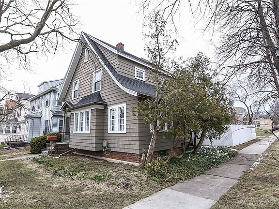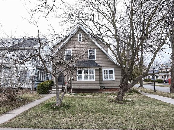 Charming colonial with great updates! Gumwood trim still intact! Original hardwood floors! The large living room features a wood-burning fireplace (the current owner has not used it), a wood mantle. Arch doorways. Formal dining opens to the kitchen area. Features French doors to the enclosed porch. Powder room. The kitchen was remodeled in 2019-Medium wood stain-shaker cabinets, Corian counters, an island, deep stainless sink. Tile floor. Nice and open layout! Appliances: stainless dishwasher; gas over range; and built-in microwave. The enclosed porch features a wainscoting ceiling, a wall of windows, and access to a private fenced yard. 3 nice-sized bedrooms (the smaller one does not have a closet but does have access to a walk-up attic). The main bath- has arch tub/shower tile walls. Gorgeous & original tile flooring! Built-in linen storage. The walk-up attic is nice! Skylight and windows make this a bright light space to finish off for future living space! Roof approx. 2015. Hot water boiler 2017; hot water heater 2015. Some vinyl window replacements! The basement has plenty of storage room. Laundry hook-ups and laundry sink. 100 amp service. Offers due: Monday 4/4/2022 at 1 PM