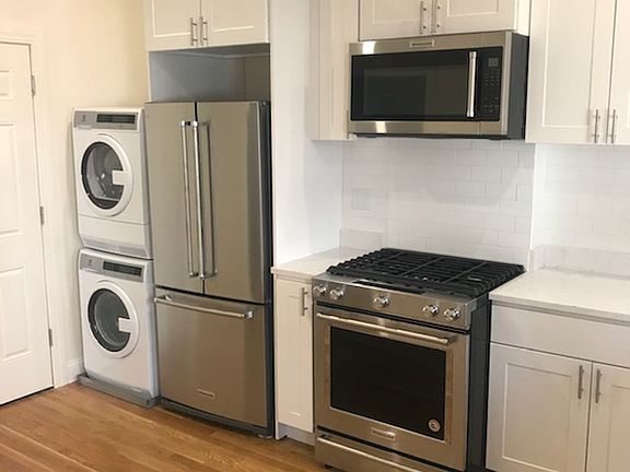 This sun-drenched apartment on South Boston's west side, has everything from brand new stainless steel appliances to central air and in-unit laundry. This unit feature a office space off of the living room that will fit a desk, peloton and extra storage! The apartment has hardwood floors throughout, marble bathroom floors and bathtub. Appliances include a stainless steel Bosch gas range, Bosch dishwasher, and a stainless steel refrigerator. Enjoy some fresh air on the private, back deck. Pets Friendly!