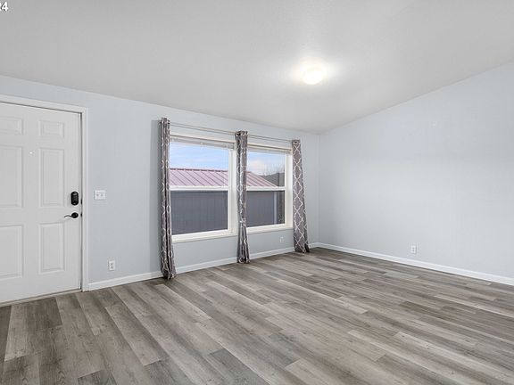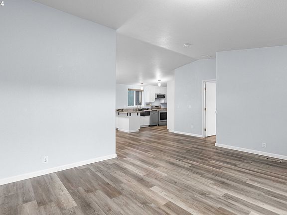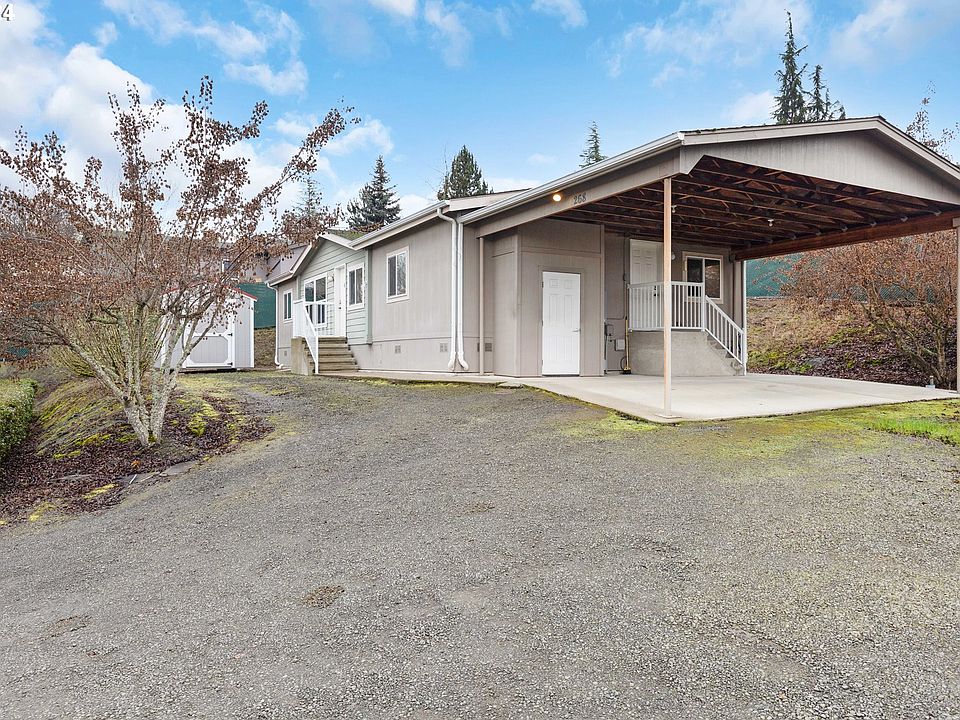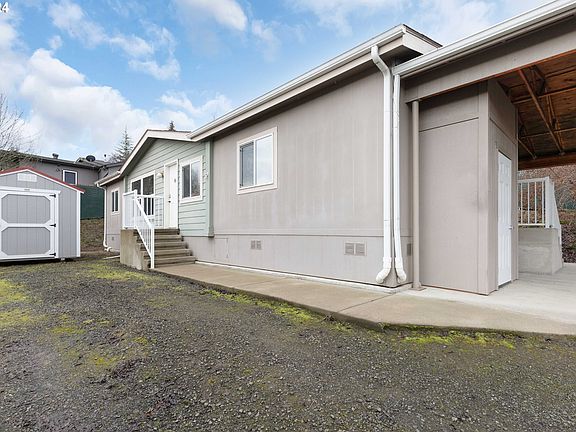 You'll be wowed by the beautiful kitchen, featuring new cabinets, granite countertops, a new sink, range, built-in microwave and dishwasher, all installed within the last 3 years. Two extra matching cabinets will remain with the home. There is a convenient washer/dryer area, a cozy breakfast nook, and a separate dining area. A pet door is perfect for a cat or small dog. This 3 bedroom, 2 bathroom double-wide also boasts new laminate flooring throughout. A nice sized storage shed stays with the property. The primary bedroom includes a walk-in closet and a large, attached bathroom with a walk-in shower featuring a seat and a linen closet. Two additional bedrooms share the second bathroom with a tub. Three parking places; one in front of the shed, one under the carport and one between the two carports. Buyer approval by the park is required and the current park rent of $550 per month includes sewer and landscaping.