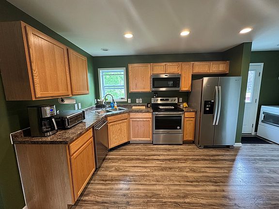 Step into comfort and convenience with this modern raised ranch, built in 2020. Designed for easy maintenance, this home features an open floor plan with a bright living room that flows into the eat-in kitchen. Off the kitchen, you'll find a handy laundry area leading to a spacious back deck with serene views of farm fields and mountains. The primary suite includes a private bath, plus there are two additional bedrooms and another full bath. The full walk-out basement offers potential for extra living space or generous storage. Enjoy central air for warm days and efficient electric heat year-round. With low utility costs, a double lot, and plenty of parking, room for a garage to be built too, this home offers space inside and out.