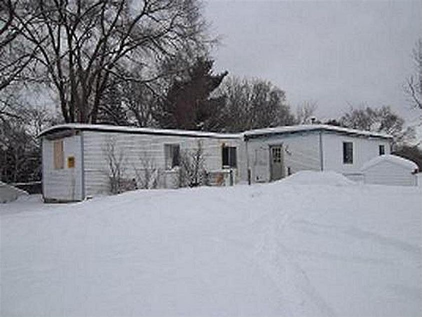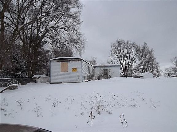 Exterior Features:Vinyl siding. Windows with some screens that were ripped. Nosoffits or eaves. Has an uncovered front porch. Unable to see roof dueto large amounts of snow. Driveway is dirt. House is in poor condition. Interior Features:Home is a single-wide trailer with an addition in the country. This is a 4 bedroom, 1 bath home. Living room, dining room, no basement.Partial crawl space open to the outside. The interior needs a lot ofwork. Walls in need of much repair. Flooring needs to be replacedthroughout. Hot water heater. No furnace seen. Kitchen with sink andstove only.