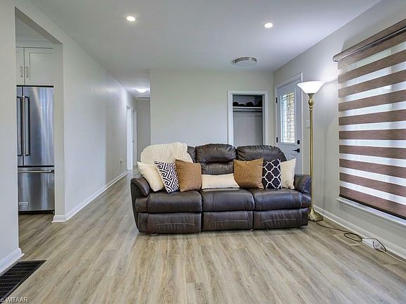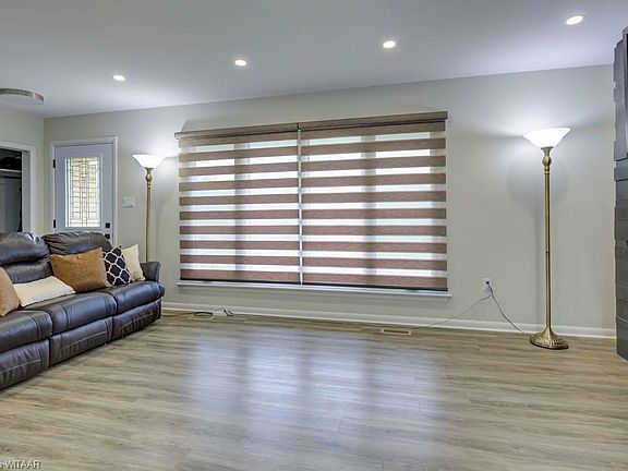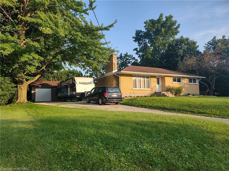 Welcome to this beautifully renovated home, updated in 2020 to blend modern luxury with expansive outdoor living. Nestled on a large, private, park-like mature tree-lined lot, this property offers ultimate privacy and space for relaxation. The main floor features high-end finishes, kitchen with premium cabinets, quartz countertops, a stylish backsplash, and new stainless-steel appliances. The contemporary floor-to-ceiling fireplace adds a chic touch, while the new Zebra blinds offer both elegance and practicality. Two newly renovated bathrooms enhance the home's appeal. The lower-level bathroom is a standout, boasting a spa-like atmosphere with a luxurious 7-foot custom shower, multiple body jets, and a rain showerhead. The spacious family/home theatre room is perfect for entertaining, complete with a beverage center and easy-to-clean porcelain tile flooring. The large lower-level bedroom, featuring an egress window and two closets, is an ideal primary suite. Step outside to discover a beautifully landscaped backyard with a two-tier, 450-square-foot deck—perfect for hosting gatherings or enjoying a peaceful morning coffee. The new 16x20 garage and 10x16 shed, built by Mennonite craftsmen (Wagler Mini Barns), are both powered and versatile. The 10x16 shed is insulated with hypoallergenic sheep wool, making it suitable for year-round use as a workshop, storage space, or exercise room. The extra-long driveway provides ample parking, even for a large RV. Recent updates from 2021 include new eaves, soffit, fascia, windows, doors, central air (with a new AC unit in 2023), hydro panel, plumbing, flooring, lighting, fireplace, deck, landscaping, and garage. Located just 5 minutes from the 401 and within walking distance to downtown Ingersoll's charming restaurants and Victoria Park, this home offers the perfect blend of convenience and luxury