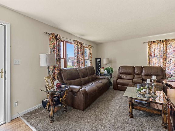 This one level home features many updates! Updated carpet in the living room and bedrooms, a completely remodeled bathroom with updated shower surround, faucet, vanity, toilet, and flooring. The kitchen features newer countertops, cabinets with plenty of storage space, an area for barstools, and a large area for a dining room table with tile flooring throughout. This home features a neutral color scheme throughout, white woodwork, and is situated on a large corner lot for plenty of yard space plus off-street parking.