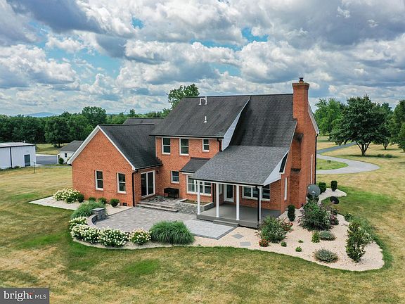 See interactive virtual tour. Classic, All-Brick Colonial on 7+ unrestricted acres filled with new improvements and amenities: New hardwood floors, new windows, remodeled kitchen with new stainless appliances,, new covered Trex deck and paver patio. Main Floor Primary suite includes remodeled bath with designer tub and separate shower and large walk-in closet. Outside, detached garages with 11 car bays, car lift and water and floor drain. Includes RV garage space. No restrictions, no HOA.