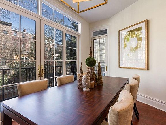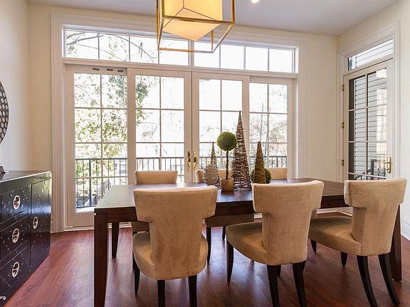 This fabulous Jersey City home exhibits beautiful curb appeal, lush outdoor spaces, posh indoor luxuries and a fabulous location directly across the street from beautiful Van Vorst Park. Stunning French doors greet you upon entering this lovely home and guide your travels through to the expansive living and dining rooms, complete with Brazilian Cherry hardwood floors, and original details like a custom built-in mirror, woodwork and molding. Floor-to-ceiling windows let light flood this space, keeping it feeling airy and fresh. A breathtaking double-wall kitchen awaits at the rear of this level and showcases meticulous design and attention to detail. Top-of-the-line stainless steel appliances, including a gas range + hood, refrigerator, dishwasher and dual wine coolers, have been impeccably matched with pure white Caesarstone quartz countertops and a mosaic tile backsplash. Floor-to-ceiling glass doors allow you to seamlessly host a dinner reception in the formal dining room and on the large rear deck, so your guests can enjoy the luxury of indoor and al-fresco dining. A set of stairs carries you down to your private backyard, complete with a bluestone patio and immaculate landscaping. Expansive living room plus a convenient powder room complete this floor. Upstairs, more premium amenities await. Four spacious bedrooms all feature several windows, custom closet organization and private en-suite baths with radiant heated flooring. The master bedroom is truly something special. With an oversized floorplan, his-and-hers custom walk-in closets, a luxurious bath (boasting a soaking tub, custom double vanity, high-quality marble, a glass-enclosed shower and designer finishes), and a private balcony overlooking the backyard. A massive skylight, video intercom system, central AC and a washer + dryer complete this breathtaking home. A magnificent location leaves you near endless delectable dining destinations, including Razza, Porta and Kitchen Step. Also nearby, you ll enjoy close proximity to great transportation options like the Grove Street PATH station, Jersey Avenue Light Rail station and several major bus routes for convenient travel to Manhattan and beyond.