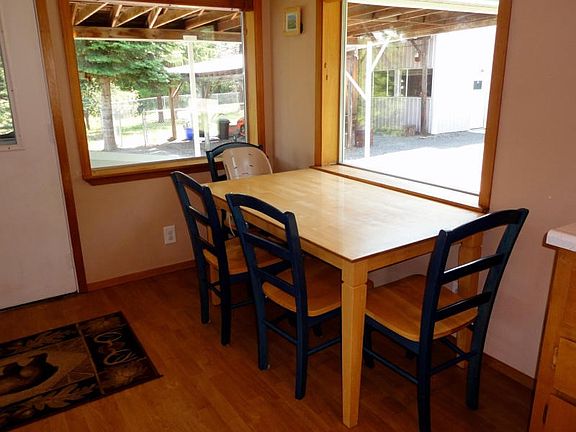 Charming home in desirable location just a few minutes from town, yet in the privacy of the woods. Contemporary open floor plan with 3 bed, 2 bath, huge windows for gorgeous mountain and city views, large bonus family room, extra large bathrooms, storage room and wood stove for efficient heat. 50' x 24' shop w/workshop area, attached 1 car carport, detached carports for 5 cars, fenced area w/another outbuilding, raised garden area, fruit trees and mixed timber all on 7.99 acres. Private locat