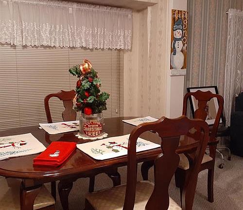 - Ceiling Fan(s), Window Treatments, Dining Area, Eat-in Kitchen, Carpet, Formal/Separate Dining Room, Family Room Off Kitchen