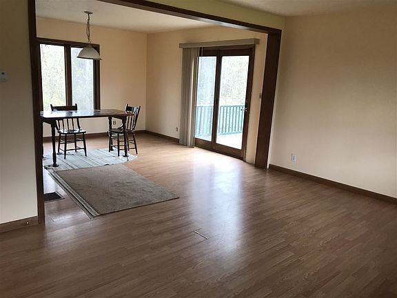 Set on a pretty country lot in the Town of Pierrepont and Potsdam School District, this home features a large living room opening to the dining area / kitchen with oak cabinets. There is a glass slider to the deck and yard. Also on the first floor is the master bedroom suite with master bath with soaking tub and separate shower. Included with the master bedroom is an adjoining room which could be an office, playroom, or nursery. There are also 2 more bedrooms and a full bath. Upstairs there are 2 more bedrooms with plenty of storage and both are carpeted. A 2 car garage is attached and has access to the full unfinished basement. The roof and forced air furnace are 2 years old. The chimney is new. Home has been freshly painted and windows are Anderson and Malta. The yard is lovely with lilac and rose bushes and the Tracy Brook bordering the back and one side.