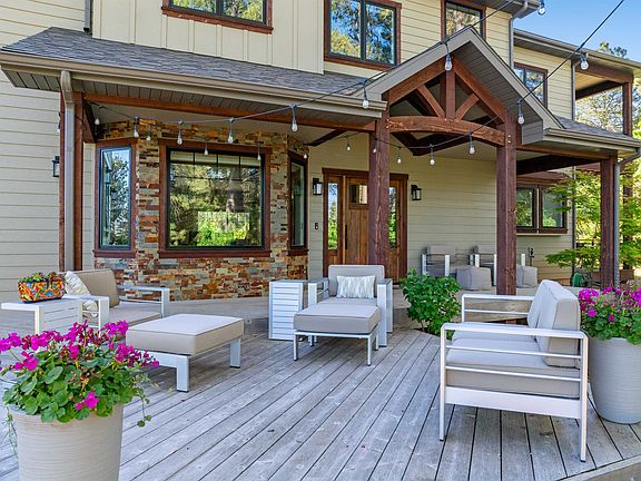 Call or Text Listing Agent - Kellie Peotter - The Real Estate Center of Spearfish - 605-641-7295 for more information. Fully custom 5 bed, 3.5 bath Mountain Plains II home! Built on 3.39 private acres surrounded by pines and conveniently located minutes from downtown Spearfish. Enjoy mountain living with the bonus of paved roads! Thoughtfully designed open-concept with clean lines and main floor conveniences incorporated top-of-mind. You will notice the 9ft ceilings throughout and bright yet warm high-quality finishes that make you feel right at home, but exudes relaxed luxury. The contemporary kitchen has quartz countertops, stainless appliances, wood beam accents and a large walk-in pantry. The breakfast nook is perfect for casual meals and has great natural light. The dining room has a custom built-in with hickory cabinets and quartz countertops. This home features two gorgeous primary suites with private, covered decks and ensuite baths with floor-to-ceiling tile showers and an extra-deep soaking tub. Enjoy your morning coffee surrounded by pines and wildlife on the front deck or take in the city view from the private roof-top deck. Both the spacious living and family rooms have gas fireplaces for extra warmth and ambiance. The upper level also has a bonus room perfect for an exercise studio, play room, library or whatever suits your needs! The front yard is landscaped to be low maintenance and the backyard is fully fenced with lawn and a covered patio.