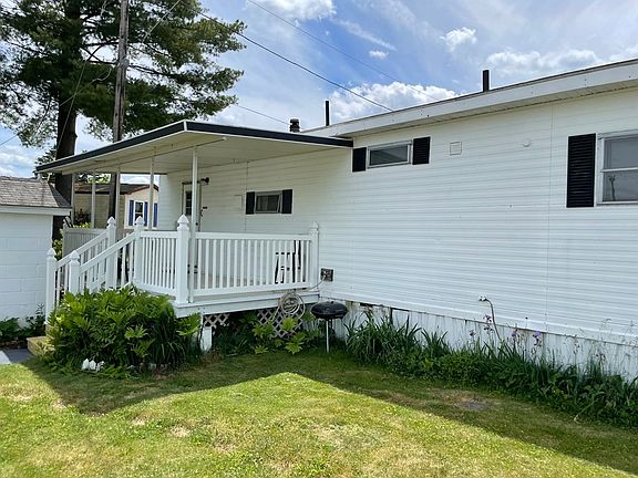 This manufactured home situated at Monson Manufactured Housing Community offers an open concept layout for easy living and entertaining. You'll enjoy spending time on the oversized, inviting covered porch. The kitchen offers ample cabinetry & counter space that opens up to a dining room leading you to a sun filled living room with a propane fire place. All 3 bedrooms feature built ins, additional closet space and wall to wall carpeting. The full bathroom has a double vanity with storage and washer & dryer. The seller states other features include: central air, newer oil tank (APO 2021) & electric range (APO 2019), and 2 sheds for additional storage space. The park is pet friendly and conveniently located near shopping and the Mass Pike. Schedule your showing today!