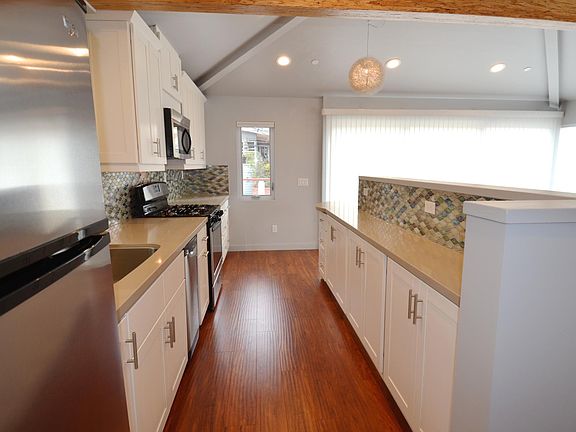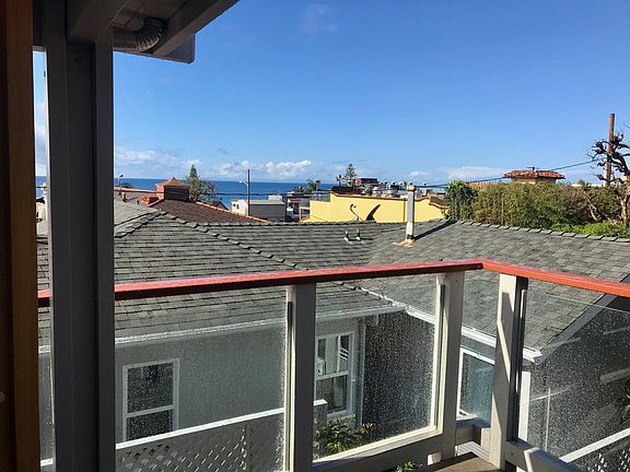 Newly remodeled, this is the upper floor of a duplex in the Woods Cove neighborhood- a 5 minute walk to the sand, 1 block to Pearl Street beach. Amazing ocean views, large private front deck with large new European sliding doors, large master bedroom deck with french doors opens to the back garden. Hardwood floors, quartz stone countertops, mosaic tile backsplash, stainless steel appliances, designer lighting. Sliding glass door panels slide to open to enjoy the indoor-outdoor living space. A bar counter adds seating to this high end unique open space. Bathroom has a farm style porcelain sink and mosaic tile details. The Laundry is located in the separate laundry room downstairs. Parking in front driveway and single car garage a total of 2 parking spaces included). A large private landscaped backyard garden space is also included with this unit. Very contemporary, clean and open. All utilities included in rent except cable. Landlord pays water, gas, electricity, gardener, trash. No smoking, no pets. There are 2 units in the duplex, this is the upper unit. Landlord likes a long term tenant but prefers doing a month to month agreement. Unfurnished.