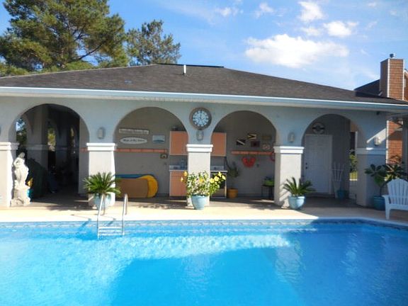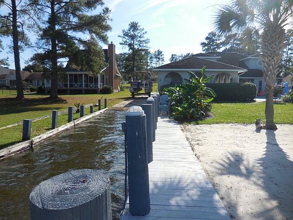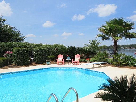 THIS LAKE FRONT RESORT HOME IS A MUST SEE! Located on the lake at Bay Meadows Estates. Outdoor living with a large in ground pool, a private beach front and dock with a boat slip. Covered porches that look out over landscape lawn. The home opens up with high ceilings that allow the perfect view of the lake. The master suite has a walk in closet, tiled shower and whirl pool tub along with double vanity. Upstairs features an open living area and large wet bar with kitchenette, three bedrooms, one full bath and a Jack and Jill bathroom.
