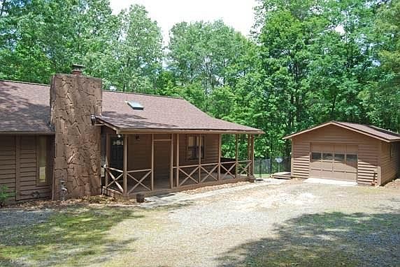Impeccable! This well maintained 2 bedroom, 2 bath home features a rich warm interior with beautiful hardwood floors, wood burning FP w/insert for the most efficient winter heating. Granite counter tops in kitchen, two skylights in baths and an office/den area off one of the bedrooms. In addition, a bonus room off the living room, all one level living. Large covered back deck, fenced yard for pets, extended one car garage w/work shop. Architectural shingles on roof, huge crawl space and circle drive. Just 5 minutes from town. Sq ft is from Tax Card estimate.