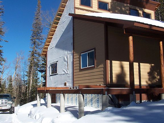 New construction, cabin framed in and part of electrical rough-in installed. being sold in the current state of completion. corner of lot is 90 feet from water main and sewer main located on Mtn View. electrical service connected to the cabin. and tool shed. 450 gallon water tank located in the crawl space. permitted and inspected to this part of construction.