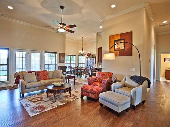 Beautiful custom home, great layout, split bedroom plan, open living area, very well constructed offering energy efficient windows and doors, 50 year concrete roof, exterior is stucco, stone, and cedar. Awesome grilling patio connected to huge covered patio, just down the street from the subdivision pool!