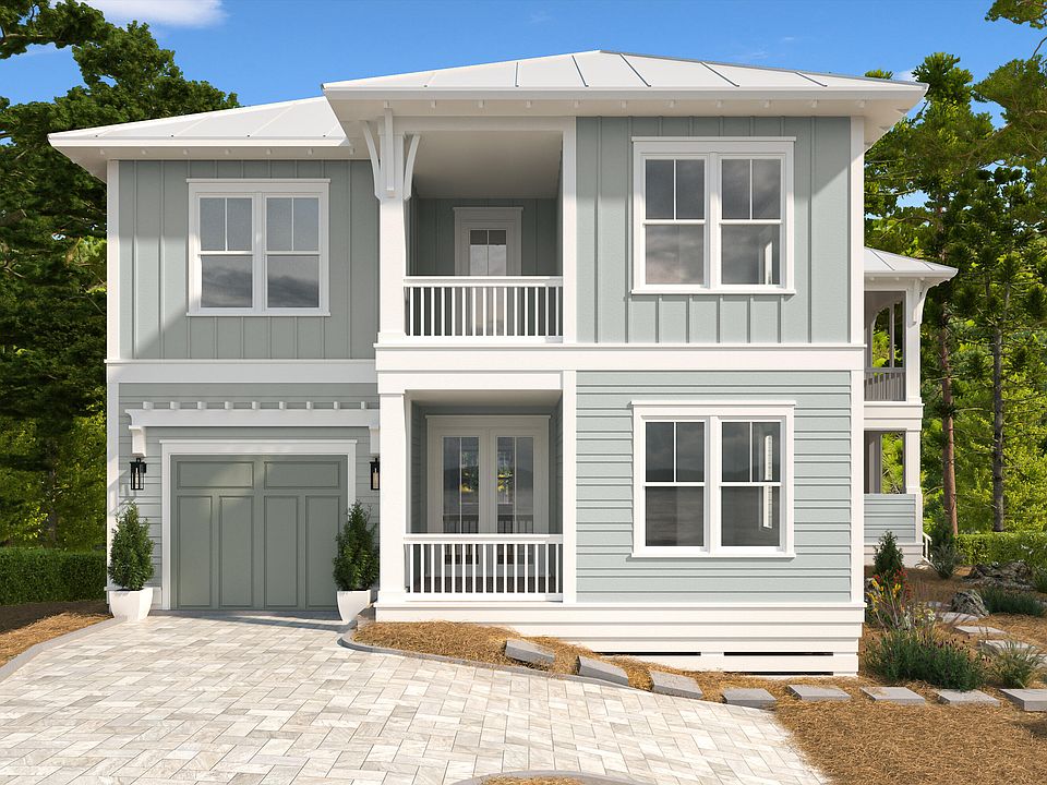 The paved driveway offers ample parking, leading to steps that ascend to the inviting front porch. The one-car garage is thoughtfully designed to accommodate bikes and beach toys, aligning with the outdoor Florida lifestyle. Accessible from Highway 98 or Scenic 30A through Seacrest Beach, the new Treetop community provides convenient access to a community pool and deeded beach entry, enhancing the appeal of this well-located, brand-new home. Home will be sold fully furnished and scheduled to be completed February 2024. Photos are renderings and are subject to change.