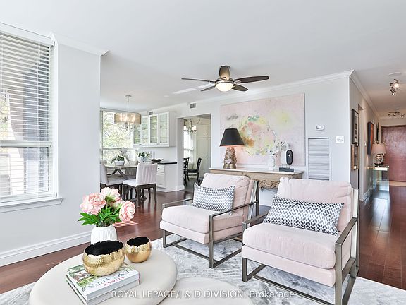 Rarely available, this southwest-facing corner suite in a coveted Tridel community offers over 1,500 SqFt of refined living. Sunlit interiors showcase a renovated kitchen with granite counters, breakfast room and full pantry, while open living and dining spaces feature hardwood floors, a custom built-in dining room buffet,and wraparound windows with sunny, treetop views. The versatile family room serves as an entertainment room or office and opens to a second bedroom with Japanese-style privacy doors and concealed fold-away Murphy bed (currently open). The primary retreat includes two walk-in closets, expansive windows and 5-piece ensuite. Additional highlights include ensuite laundry with full size stacked front load washer and dryer, a generous balcony, two parking spots (tandem), private locker and access to updated amenities: gym, party room, billiards, library, sauna, and outdoor pool. With utilities included and a premier location near parks, Avenue Road fine shops, upscale dining, TTC and Hwy 401, this turnkey residence epitomizes sophisticated urban living.