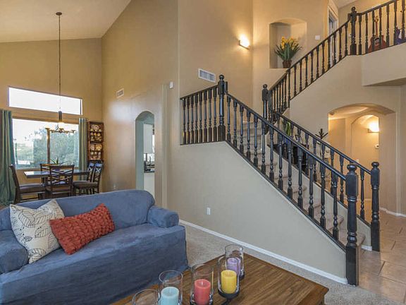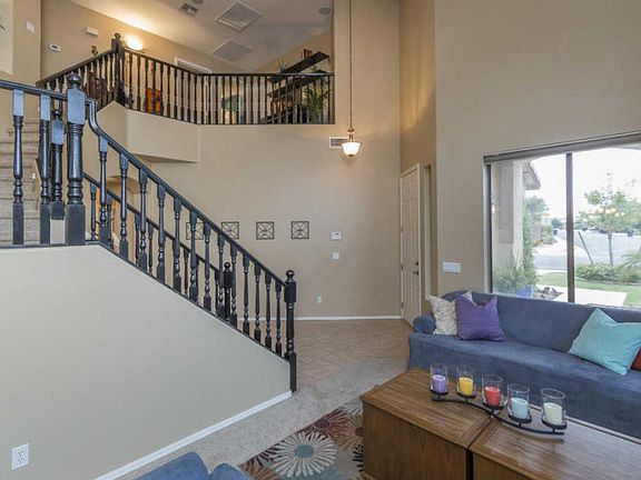 BEAUTIFUL home on the golf course in Coldwater Springs offering 4 bedrooms & 3 baths with separate living/dining & family rooms. The kitchen is nicely finished with white cabinetry, stainless appliances, Corian counters, glass tile backsplash, & island with additional storage. French doors lead out to the covered patio w/roll-down shades, extended patio and large grass backyard with fruit trees, sprinkler system & landscape lighting. One bedroom & full bath downstairs, perfect for guests! The master & 2 bedrooms are upstairs. The master has a private balcony with golf course views, and attached bath with dual sinks, separate tub & shower & walk-in closet. Upstairs bedrooms also have walk-in closets. Other features include a 3 car garage with service door, epoxy floors and utility sink, new