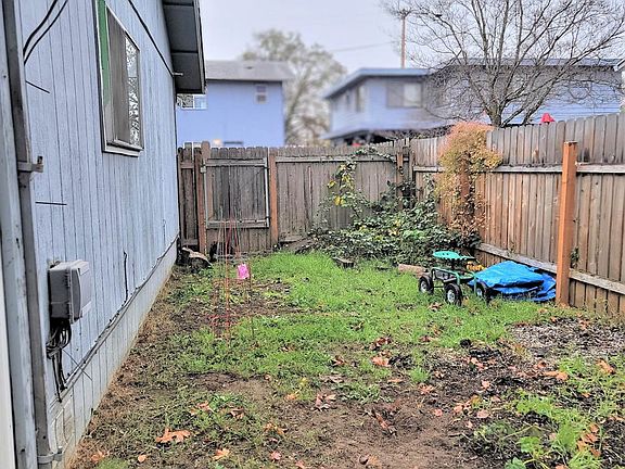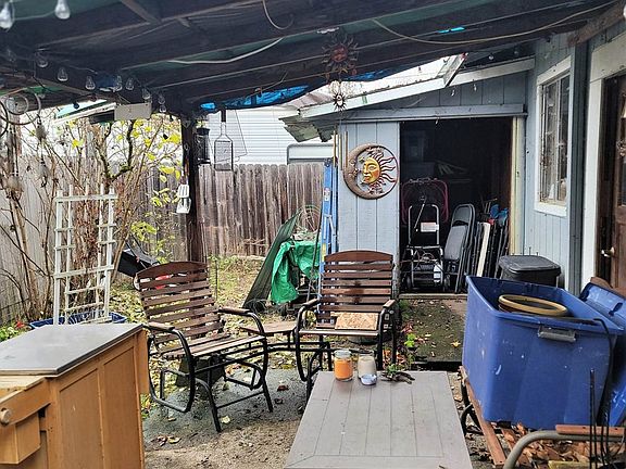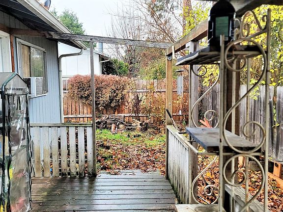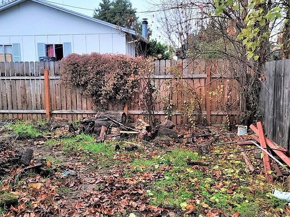Nicely Laid out 3 bed 2 bath home ready for your personal touches. Large main bedroom and bathroom with a door to the exterior deck and yard. Large kitchen that could use some updating; includes washer and dryer hookups, dishwasher, stove, and fridge. Baseboard and wood heat. Laminate flooring in the living room. Fully fenced back and front yard. Garage was converted; one side to storage and the other an office. Some TLC would make this house a home!