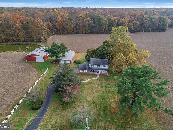 WOW! Check out this incredible 28+ acre property located in Townsend, Delaware. Properties like this rarely become available. Surrounded by farms and state forest you will fall in love with this location the minute you see it! You can walk to the adjacent Blackbird State Forest trails which borders the rear of the property. The property features three ponds for you to enjoy. The extensive road frontage provides possibilities for subdivision. There are so many possibilities with this property! Opportunity for a famer or even a horse enthusiast! More importantly, it could be your personal refuge or an extended family/friend compound where you can enjoy the beautiful property of open fields, woods, and ponds. You must walk this lot to see just how special this property is. There is a 60' x 40' pole barn with small loft and dirt floor. A large 32' x 27' detached 2 car garage with connected 30' x 25' shed space. The brick 4-bedroom, 2.5-bathroom colonial home can use some updating but has solid bones! The home features: hardwood flooring throughout the home, fresh paint, full basement, 2 wood stoves, a sunroom/porch, and an attached 2 car garage. There is potential income for the buyer to lease out the land so that you do not have to maintain yourself. Seller is currently receiving agriculture tax discounts, buyer responsible for any changes to the land and any roll back taxes that could incur. The best part is even with all of the privacy you are only 15 minutes to shopping in Middletown or Smyrna. Schedule your showing today!