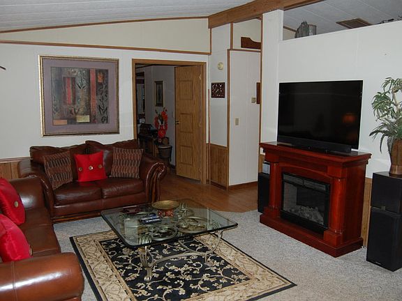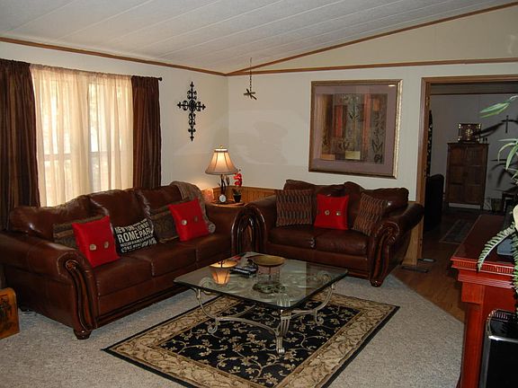 Spacious home on 5 wooded acres - red barn included! Well-maintained manufactured home features living room, family room, dining, spacious upgraded kitchen, laundry room, master suite with private bath. Cozy wood fireplace. New snow roof installed in 2015. The barn/shop is a MUST-SEE!