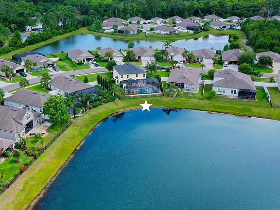 SELLER IS OFFERING $10,000!!! TOWARDS BUYERS CLOSING COSTS. Amazing pool/spa home with expansive lake views in Andalusia. This home offers everything! At nearly 3,000sf, this 4 bdr, 2.5 ba with primary on the main and an upstairs bonus area offers an option for every living requirement you may have. The indoor to outdoor transition is outstanding with a large lanai leading to an exceptional and oversized heated and screened pool/spa with lounging shelf and a full outdoor fireplace overlooking the lake. Beautiful new tongue and groove ceiling on the outdoor lanai. A 3 car garage, fully fenced yard, security system, water softener and wood laminate upstairs bedroom floors are just some of the upgrades to the open living floor plan. Perfect for family life, the community has a pool, clubhouse, exercise facility, 3 playgrounds and a fairy garden along with being adjacent to Treaty Park and all of the recreational activities offered there. The new super Publix is just around the corner and I-95 is a short distance down 207 for easy commuter access. This is one you don't want to miss.