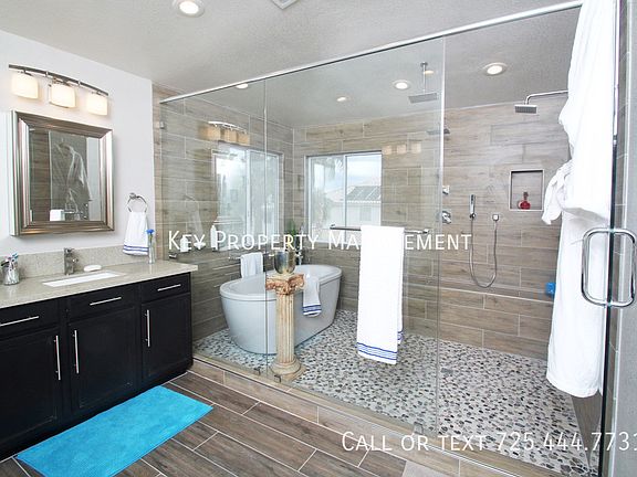 2 WEEK FREE PROMO ON IMMEDIATE OCCUPANCY*COMPLETELY REMODELED CONTEMPORARY HOME W/ POOL IN GATED HENDERSON COMMUNITY* 4 SPACIOUS BEDROOMS AND 3 CAR GARAGE* LUXURIOUS UNLIKE YOU HAVE EVER SEEN MASTER BATH WITH FREESTANDING TUB, CUSTOM SURROUND, AND MULTIPLE SHOWER HEADS* WOOD LOOK TILE, NEW BATH CABINETS AND FIXTURES* ALL APPLIANCES INCLUDED IN GRANITE ISLAND KITCHEN* ADDED CUSTOM RECESSED LED LIGHTING* COVERED REAR PATIO* LOFT* BEDROOM DOWNSTAIRS*STORAGE SHED* EPOXY GARAGE FLOORS* POOL SERVICES INCLUDED Gated Community Pool