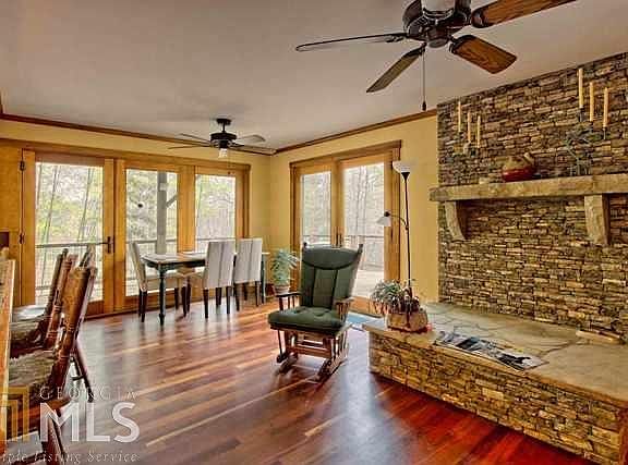 Situated on 14.480 acres and backs up to USFS. 4 bedroom and 2 bath with wrap around deck. Located in Lakemont and includes wooded land, pasture, and fenced gardens. The property also includes fruit trees, mature blueberry bushes, and a stream with a waterfall. Multiple outbuildings: Greenhouse, barn with a chicken coop, RV shed, and 1 bedroom and 1 bath mobile home with a large deck. Privacy with a charming setting. New HVAC and septic installed.