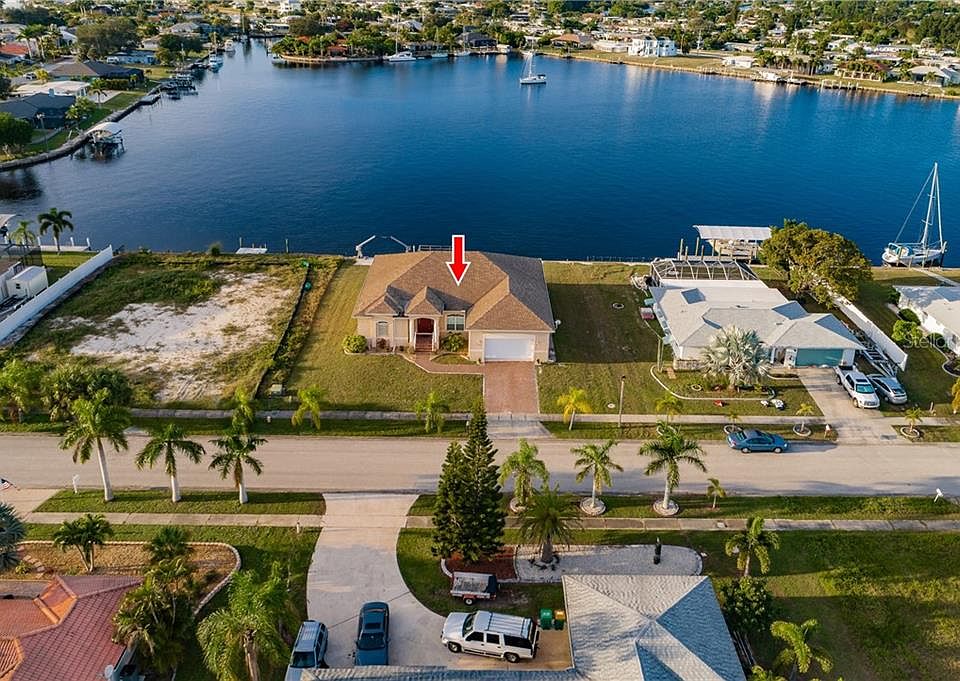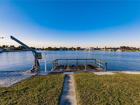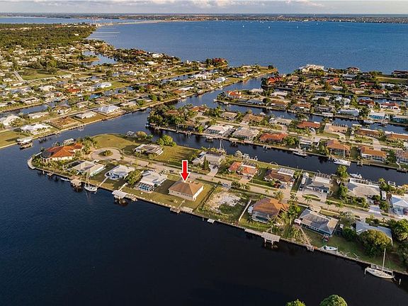This tastefully appointed home is a boater's paradise! Situated on a wide turnaround basin, this sailboat waterfront home on a third of an acre is mere minutes to beautiful Charlotte Harbor and then on to the Gulf of Mexico. 100 feet of water frontage with dock, davits, and concrete seawall, so bring your boat! There's plenty of room for family and friends with over 2300 square feet of living space, living and dining, spacious Florida room, and kitchen with roomy breakfast nook. The open floor plan with lots of windows provides you with a panoramic view of wide waterway from all main living areas. This home offers ceramic tile and blinds throughout and decorator light and fan fixtures. Unique architectural features such as tray ceilings in great room, dining room, and master bedroom, plant shelves, recesses and niches, arches, and pillars add a touch of elegance to this beautiful home. Great room has double tray ceiling with crown molding and accent lighting and leads to the French doors that take you to the Florida room. You will spend most of your time relaxing in your huge Florida room with wall to wall windows enjoying the beautiful water view and watching the boats go by. Kitchen boasts custom wood cabinetry with deep drawers and slide outs, granite counters with task lighting, appliances including new garbage disposal, pantry, and breakfast bar that opens to the main living areas for easy entertaining. Enjoy your morning coffee in the breakfast nook overlooking the waterway. Additional wood cabinetry in breakfast nook includes buffet and built in desk. The master suite has 2 walk in closets, and will be your personal retreat with private en suite bath with custom tiled Roman shower, dual sinks, and soaking garden tub. 2nd bath also has custom tiled Roman shower, and 2nd bedroom has walk in closet providing extra storage. No expense was spared in building this home which includes stem wall and ICF solid concrete poured wall system with foam insulation. Dedicated laundry room has newer washer and dryer, utility tub, overhead cabinets, and additional pantry. Other features include new AC in 2020, public water and sewer, impact resistant windows, and hurricane code garage door. Lovely curb appeal with landscaping curbing, decorative rock, and brick paved drive and walk way. Proximity to local beaches, dining, shopping, and golf courses makes this property ideal for the Florida lifestyle. Also, easy access to public parks with bike and walking trails and picnic areas, and boat ramps providing access to many waterways, beautiful Charlotte Harbor, the Peace River, and the Gulf of Mexico. Quiet neighborhood yet all conveniences and amenities nearby. Great home in a great waterfront community.