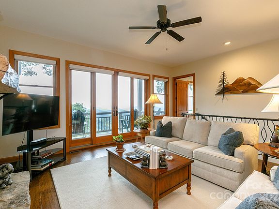 This beautiful MOUNTAIN AIR condo at SUNSET POINT is a rare find. Sitting at 4100' in elevation, your long-range, western mountain views are STUNNING, with clouds just out of reach. The updates are plentiful in this open living condo with spacious great room and dining area. Large eat-in kitchen features a gas Wolf cooktop and newer stainless appliances. Enjoy outdoor living on the large screened-in porch with stone fireplace, and on the main and lower decks.. Your main level primary bedroom has a lovely updated en suite bath. Tankless water heater. The main floor has a second bedroom and bath for guests, and laundry room. The lower level of this condo features a guest bedroom suite and den for your family and friends. Furnished with exceptions. This is a very private location at Sunset Point with outstanding mountain vistas. Seller is willing to pay half the buyers FULL GOLF initiation fee at closing, and the electric Golf Cart can be negotiated. See exceptions list and Improvements.