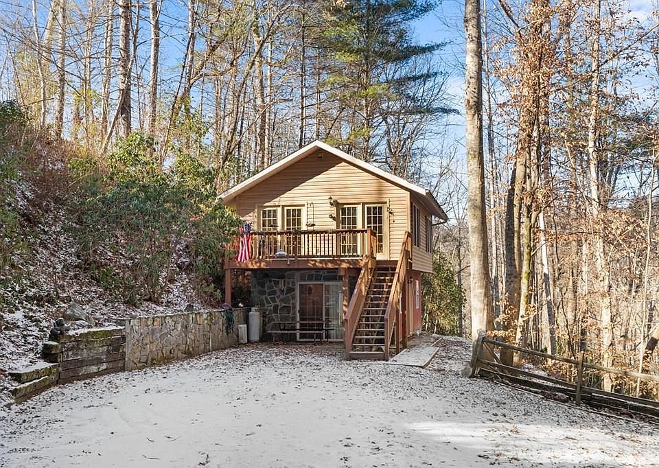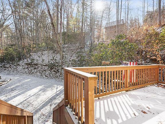 This home offers a bright, open living space with French doors that bring the beauty of the forest right inside. The main floor features a cozy electric fireplace, perfect for relaxing while you listen to the sounds of nature. The kitchen, with its honey oak cabinets, is designed for both function and charm. The dining area is a great spot to enjoy your meals while keeping an eye out for deer or other wildlife passing through the woods. The lower-level bedroom suite is a quiet retreat, with built-in closets for added convenience. A separate kitchenette on this level makes it even more practical. There's also a spacious deck, offering privacy and great views of the surrounding forest. Plus, a laundry room on the main floor adds even more ease to daily living. This home provides a peaceful connection to nature, offering a perfect spot to unwind and enjoy the serenity of the Western North Carolina woods.