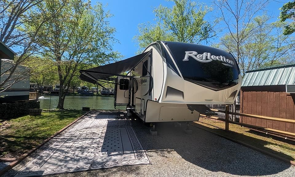 Affordable mountain living at its best! Enjoy full-time or part-time living on this perfectly situated lot in the popular 2019 Reflection 337RLS Fifth Wheel RV within the exclusive River's Edge RV park. Relax with a beautiful waterfront views from inside and outside. This travel-ready RV includes amenities like back-up camera, tire pressure monitor and a mobile satellite dish. Park amenities include a large pavilion with laundry, a huge rocking chair porch overlooking the pond and many seasonal social events. Call today!