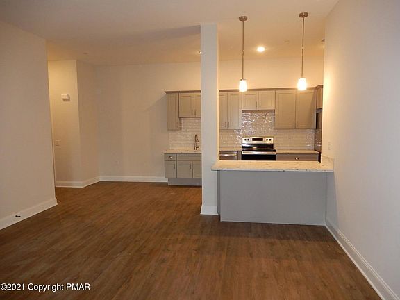Luxury apartment in the heart of the Pocono Mountains. This beautiful two-bedroom two bathroom apartment offers a spacious floor plan, with modern interiors that include kitchen island, walk-in closets, pantry, stainless steel appliances, vinyl flooring, carpeted bedrooms, tiled backsplash, quartz countertops, and washers/dryers in unit. This unit is unlike any in the area! Along with a beautiful lobby to greet your visitors. Residents also have access to a storage unit facility attached to the complex. Keypad entry for all building entrances as well as cameras at all doors, parking areas, and hallways. This unit is also handicap accessible. Great for elders. The convenient location allows you to walk, bike, ride, to local shops, grocery stores, and restaurants. Contact us today for availability and to schedule a personal tour! Renter is responsible for electric and water. Owner pays for garbage and parking. Two off street parking spots are provided per unit. No smoking allowed. No pets of any kind allowed. Three months rent is due at lease signing.