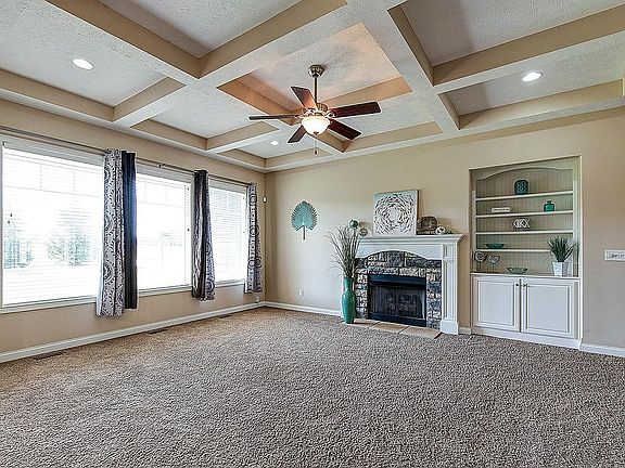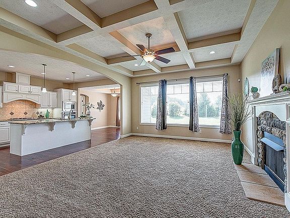 This one-owner home built by Spoon Construction was the neighborhood model! It sits on a large corner lot in Westbrook. Interior features include a dramatic coffered ceiling in the living room, gas fireplace, tray ceilings in all of the bedrooms, walk-in pantry, kitchen island & tile backsplash. Master suite features a walk-in tile shower & large walk-in closet that connects to the laundry room! Full guest suite and recreation space in lower level. Exterior amenities include a 3 car garage, covered back patio, & lawn irrigation. Come check out this high quality home by Spoon Construction!