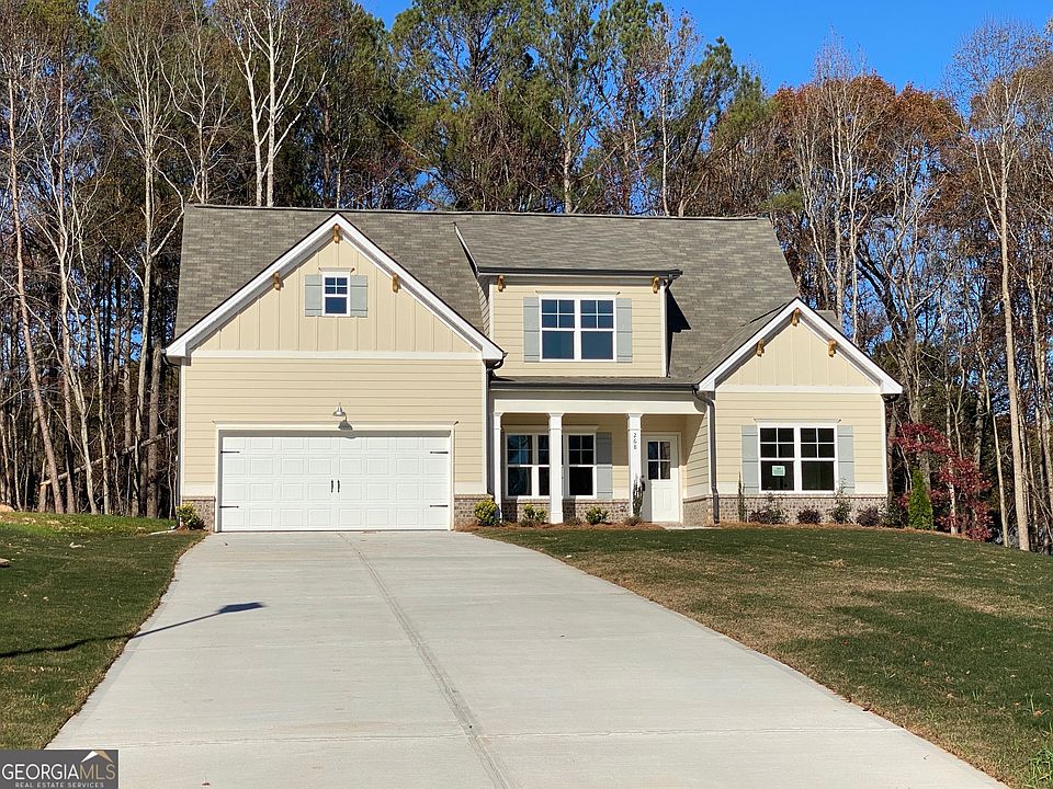 The Georgia Plan is an open concept plan that features a kitchen with a view into the family room. Kitchen has granite countertops and white cabinets with Stainless steel microwave, dishwasher, and range. Vinyl floors in the foyer, hall, family, kitchen, laundry and baths. Carpet in all the bedrooms. Home has two bedrooms and two baths downstairs and has two bedroom and bath upstairs. Huge finished bonus room upstairs. Large Laundry room. This home features a nice size covered back patio. Westminster is one the best subdivision for those that like trees. Only 47 lots in the neighborhood with quick access to Highway 316.