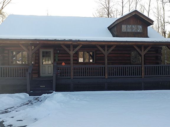 Enjoy the quiet peaceful atmosphere of this cozy log home situated on a five acre lot with a small creek running through it. This home has a very nice country location but is just a short distance from Massena, Norfolk and about 17 miles from Potsdam. This sweet 3 bedroom home has a comforting open concept, cathedral ceilings, a beautiful new kitchen that was remodeled just two years ago, two bedrooms and a full bath on the first floor, plus a loft sitting room and master ensuite on the second floor that is simply pure comfort. The full covered front porch offers the perfect place to watch the world go by plus there is a deck off the back for those more private moments. The basement is high and dry and is a full walkout to the back of the property. The two car detached garage has tons of space for vehicles. full overhead storage and a shop area. This area was the original living space while the house was being built so it is insulated and has a woodstove. There is an attached shop area that would offer many uses - a wood shop, studio, man-cave, whatever your needs might be. There is a wood shed off the back of the garage plus another storage building in the back yard. Many improvements over the years makes this a perfect move in ready home just waiting for a new owner. Make your appointment today.