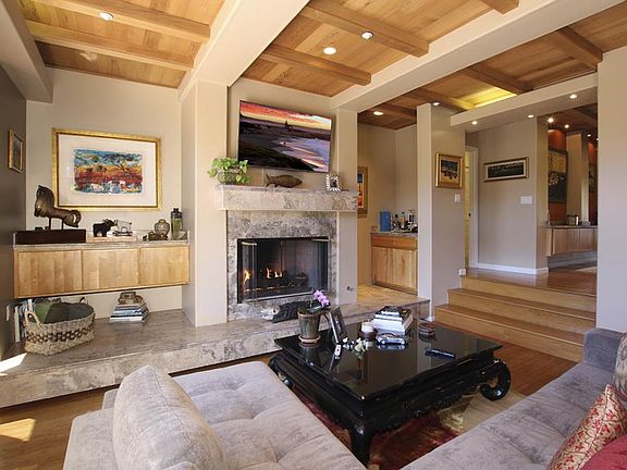 Carmel Point architectural gem. Down to the studs, complete remodel. Private and welcoming front yard. Complete with its own lavender field. Enter warm and inviting entry hall designed for you to display your Art. From the warm wood beamed ceiling to the granite floating fireplace hearth, you will be made to feel at home in casual luxury. A kitchen with high-end appliances and a large granite island are designed for entertaining. A see-through fireplace between the amble sized master and luxury master bath will warm both your body and heart. Listen to the ocean waves crash on near by Carmel River Beach.Enjoy morning coffee and evening cocktails on the private South facing deck. This home was designed by a prominent local architect and decorated professionally to provide you with the finest in casual elegance.