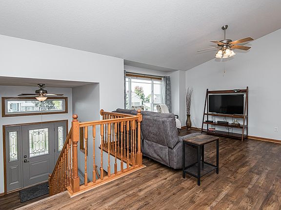 Come see this beautiful home in a desirable neighborhood just minutes from downtown Rochester. The entire interior has been freshly painted. You'll love the open floor plan. The cathedral ceiling and ample natural light create a spacious and bright living area. The kitchen is spacious with a center island and custom pull out cabinet storage along with an upright built in pantry. New carpet on the stairs and all the bedrooms and beautiful luxury vinyl plank in the main living area and downstairs family room. The kitchen has hardwood floors. Stainless steel appliances all new in 2018, hot water heater new in 2021, dryer replaced in 2023. The backyard has a nice deck that overlooks a flat yard fully fenced with black, coated-vinyl chain link fencing. Garage is insulated. Hurry! This one won't last long.