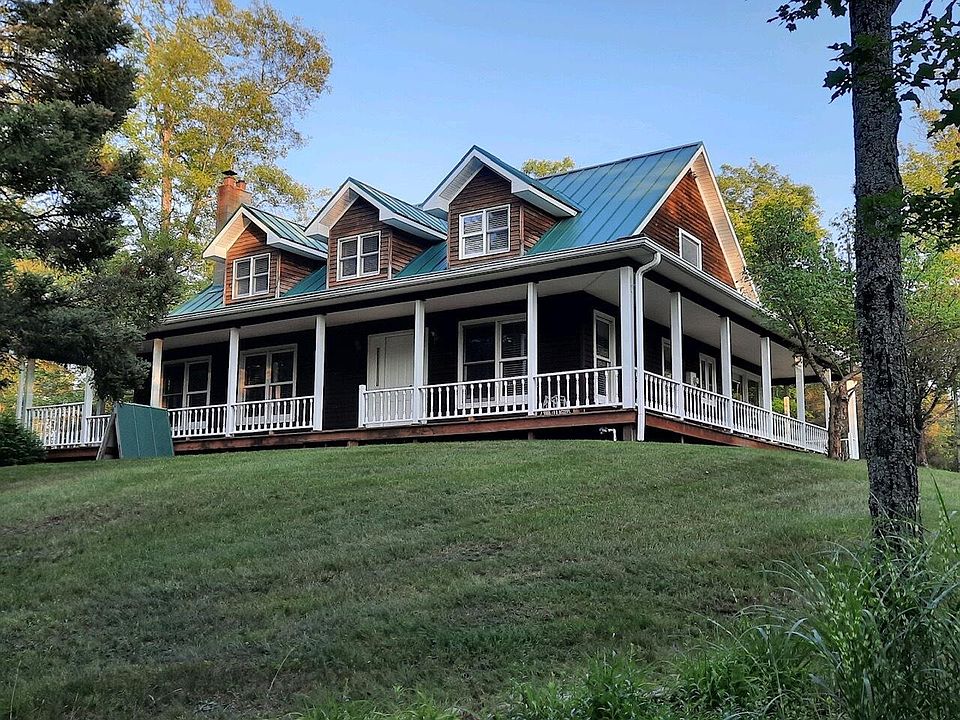 Up North tranquility. This custom, 2X6 constructed, cedar home features a wraparound covered porch, where you can enjoy a panoramic view of 50 wooded acres, a private pond and low maintenance perennial landscaping. Ground yourself with a walk through nature and drop a line in the creek. Wake each day and enjoy a cup of your favorite coffee while bird watching from a large eat-in kitchen with oversized picture windows that bring the outdoors in. Whether you are looking for rest and relaxation, a space to gather friends and family making lasting memories or an investment property you will find it here. Plenty of room to park recreational toys in the pole barn.
