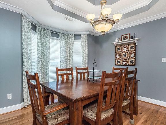 - Jetted Tub, Kitchen Island, Pantry, Linen Closet, Walk-In Closet(s), Separate Shower, Eat-in Kitchen, Crown Molding, Tray Ceiling(s), Bay Window, Solid Surface, Split Bedrooms, Safe Room/Storm Cellar
