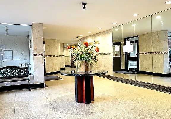 Location, location, location! Sponsor sale. No bord approval! Two bedroom, foyer, 5 big closets including walk-in. Large living room, nice size bedrooms, eaten kitchen and bathroom with windows. Secure lobby, 2 laundries in the premises, private court yard, indoor garage (waiting list). Just steps to the all transportation (B & Q train, buses...), shopping and Emmons Ave promenade with various cafeterias and restaurants. Apartment needs TLC.