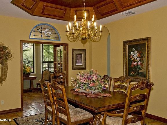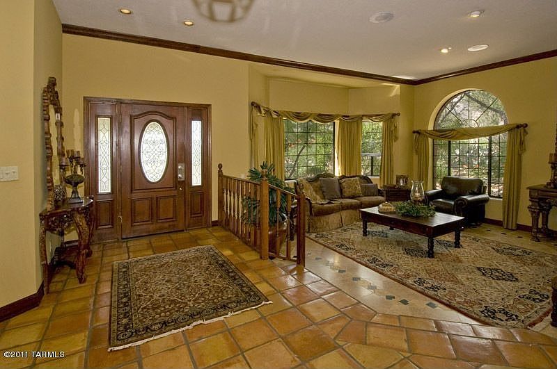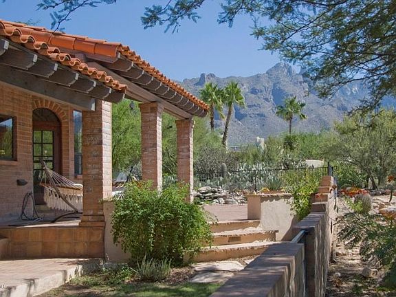 For more information on this property, contact the Listing Agent, Marilyn Joyce at (520) 906-8731 or mjoyce@LongRealty.com. A classy ''Old World'' burnt adobe house on a quiet, private Foothills lot w/mtn.views! Circular drive; fruit trees & desert landscaping! A gracious entry, a magnificent wood door w/etched glass. Wood paneled walls & coved ceiling. Built-ins in the den & library. Great updated kitchen w/designer appliances and granite counters/island. Grand fireplaces in Family Rm and Master. Sound system. Fenced yard. BBQ.Lots of upgrades