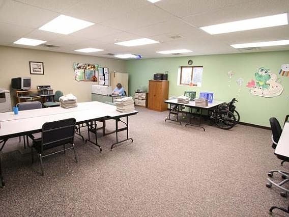This 7200 square foot building is located on 3 acres within 2 miles of town just off a County Highway.It is a pre-engineered steel building constructed on a slab with 10 foot sidewalls, steel roofing, natural gas forced air heat & central A/C.It currently offers designated offices, meeting rooms, work shop areas, restrooms, break room, kitchen, area to accommodate semitrailer deliveries, & 3 phase electrical. This building lends itself to any number of commercial applications