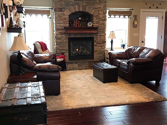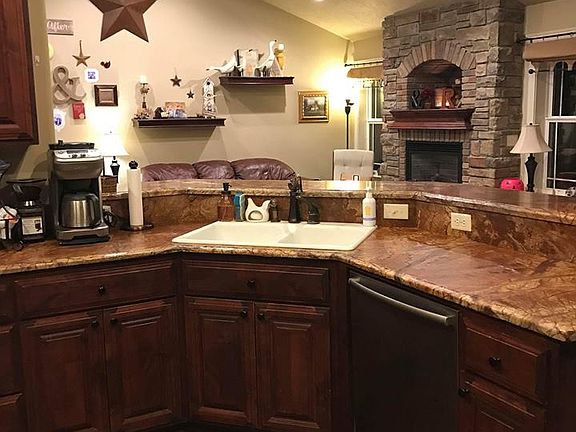 This home is built with lots of custom upgrades: Vaulted living, dining and kitchen ceilings with open concept; Exotic Rain Forest marble counter tops throughout, Custom Cherry cabinetry with crown molding, Hand scraped hard wood floors, stainless appliances, large walk in pantry, gas fireplace main floor & gas fireplace downstairs, Master bedroom suite has tray ceilings with crown molding, Master bath has walk in tile shower with two shower heads, large corner jetted tub & walk in closet. There is a large downstairs theatre room, walk in den/kitchenette with sink, mini fridge, counter, bar for seating and cabinetry. There is a downstairs master with walk in closet and attached full bathroom with 24" tile throughout (mother-in-law suite). The laundry room features large granite counter, laundry bin storage under counter, built in custom laundry bin storage, a toilet, features double washer/dryer hookups & a big utility sink. The lot is large, fully landscaped, new curbing, mature fruit trees (2 peach, 2 cherry), lots of mature trees, large garden area with raised beds and sprinkler system, vinyl fencing, gates located on either side of the home for easy access, Large wood deck! Over size 4 car garage with epoxy floor, fully insulated and finished with big windows. Great Location!!! Beautiful views, close to school, freeway, shopping but peaceful and quiet neighborhood in Highland area