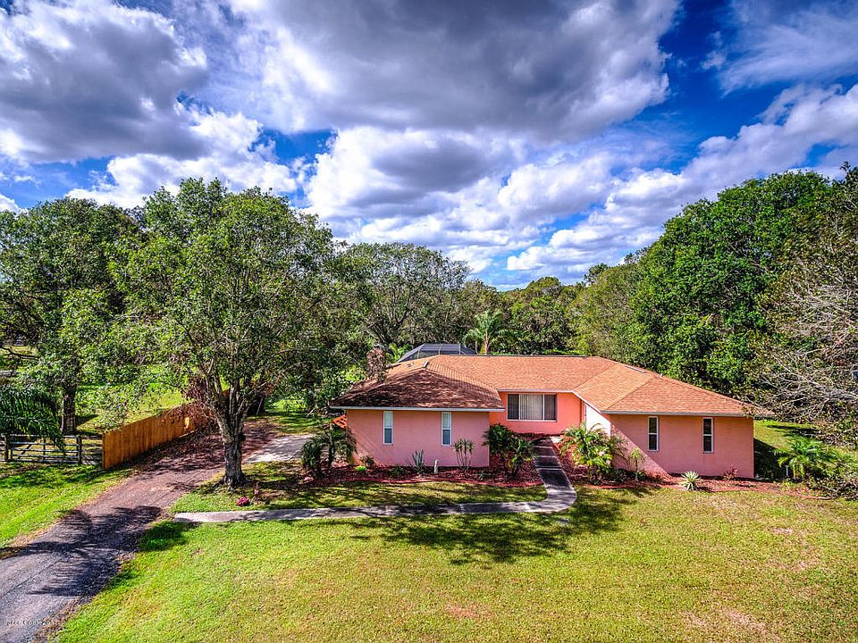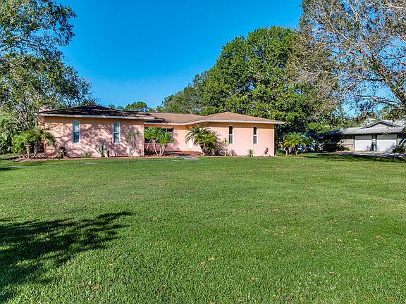 Charming Combination of a Country Setting with Modern Features. With all the recent updates and sitting on over an acre of land this property has a lot of desirable qualities. When entering you will immediately notice the open floor plan with family room overlooking the spacious and attractive kitchen. Entertaining will be a pleasure with the enormous island that accommodates 6+ people. The dark cabinetry is striking with lighter contrasting exotic granite counter tops along with the space beingcomplimented with newer stainless steel appliances and travertine back splash. The eye catching and inviting brick fireplace adds an element of elegance. All bathrooms have been recently renovated and include travetine tile, new vanities w/ chic granite, and stylish mirrors. The back yard is delightful and impressive with a free form pool that includes a water level hot tub and large screen enclosure. Lush and mature landscaping surround the perimeter giving pool days much needed privacy.