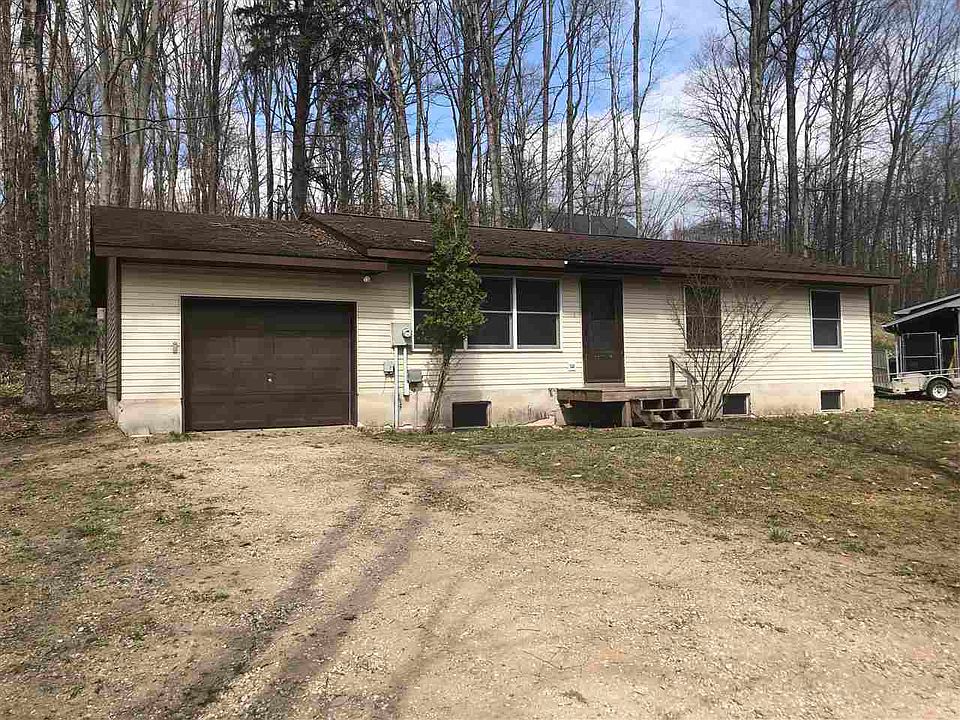 3 bedroom 1 bath home in a quiet wooded neighborhood in the city of Alanson, Michigan. Home has 1025 square feet with equal size, full basement below. Home sits on .31 acres in beautiful Emmet County in Northern Michigan. Home is vacant and ready for you to move in and make your own. All appliances stay including a chest freezer. Propane heat with 1 stall attached garage. Priced to sell!