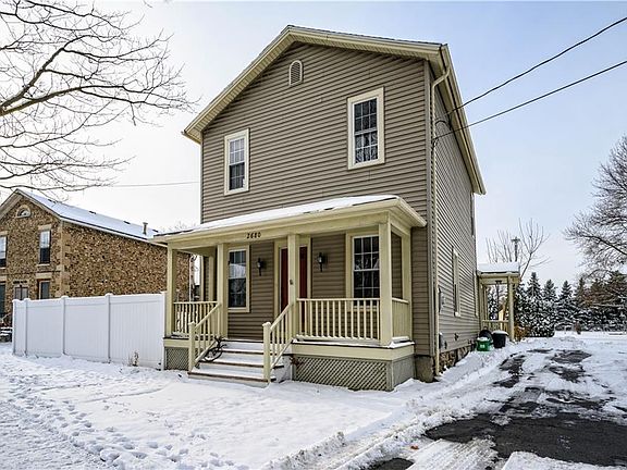 Dont miss out on this Adorable Country Colonial offering 4 beds, 2 full baths, 1,672 square feet and sits on over 1/2 an acre w/ a park-like setting. The open kitchen features solid-surface counters, a breakfast bar, pantry and eat-in area, gas stove sits in front of a brick backdrop and a sliding glass door which leads to the stamped concrete patio. The formal dining room has natural woodwork and flows into the good-sized living room w/ high ceilings, thermal windows and a door to the front porch. First floor bedroom or office area w/ hardwood floors. Full bathroom and laundry on the first floor. 3 good-sized bedrooms upstairs offers both wood floors, carpet and great closet space. Large, 2-car detached garage w/ stairs to a second-level loft that could be finished for a recreational area or storage. The recently blacktopped driveway has a turnaround for easy access and plenty of parking space. Updated architectural roof (2019), Hi-efficiency furnace (2016), h20 tank and vinyl siding and new blown in insulation in the attic. Partially fenced side yard and a wall of arborvitae bushes in the backyard offer ample privacy.